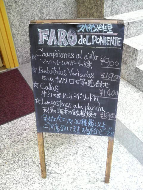 2009年03月11日 スペイン料理 ファロ デル ポニエンテ (淀屋橋) 淀屋橋オドナの1階にある ファロ デル ポニエンテを覗いて来ました〜 と言っても準備中でしたが(^_^;) せっかくなのでお店の前にあった看板をパシャして来ました〜 「大阪」カテゴリの最新記事 < 前の記事次の記事 > コメント コメントフォーム 名前 コメント 評価する リセット リセット 顔 星 投稿する 情報を記憶 トラックバック